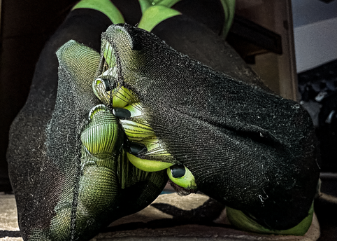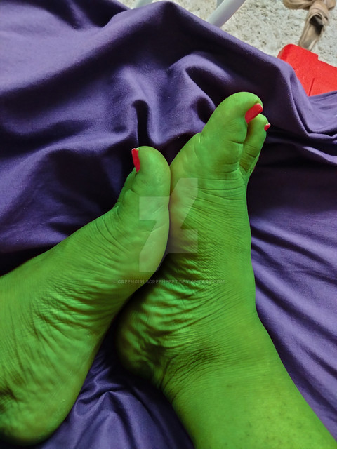 #feet #green #growth #hulk #nail #nylon #pedicure #polish #she #skin #woman #rippedclothes