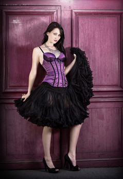 Classic pose and the busy background and the black tutu contrast nicely with your pretty face and smooth skin.