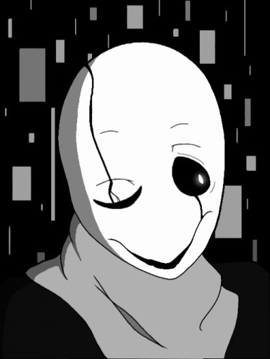 Nice touch. The black and white create a striking contrast that at the same time has a kind of elegant simplicity. Gaster's eyes have a liquid look to them so that I could believe they were 3D. Faved!