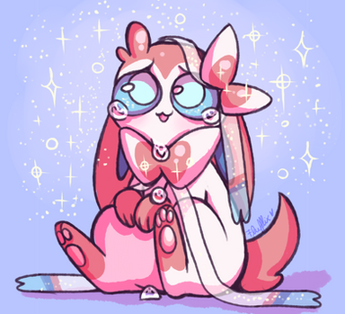 Wanted to draw something cool for pridemonth but it just didnt work out ghhh so i made something small i still like it tho ;w;ofc its transpride bc im hella trans and gay and sylvee has the transflag colors nYAHAHA