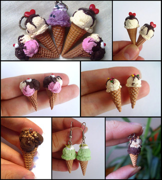Here are the Icecream Rings, made out of Fimo clay and decoration material~They have an adjustable ring on the back to fit any finger size!