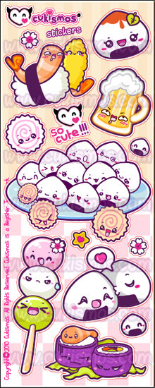 Here's a Sushi Sticker sheet with all kinds of njummie sushi!All of our stickers are digitally printed onto 140gsm, high quality, gloss vinyl which is suitable for both indoor and outdoor use; meaning nowhere's safe from your sticker addiction!