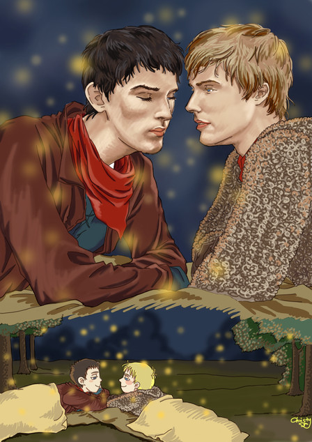 Though may I give a bit of constructive criticism? You might want to blur the edges of the shadows on the two a bit more. At a certain point of view it looks like Arthur and Merlin are smudged from shoveling coal. (please don't hate me