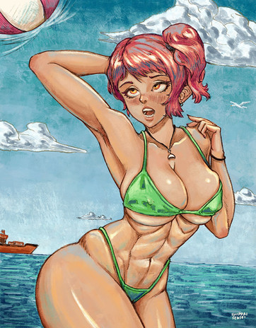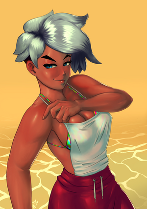 "Ohh, are you worry that I gonna burn in the sun? Well hurry up and use the suncream on me~"Commissions OPEN!!!