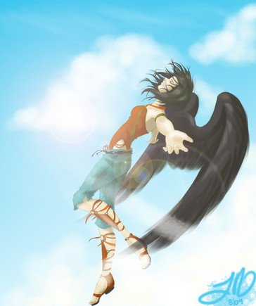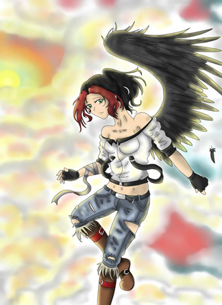 FINALLY!So here's the final product, complete with a background! For those who havn't caught on, Its Maximum Ride from the James Patterson books. I based her off of the titlepage of the third book (Saving the world and other extreme sports). If you havn't seen the other parts of this project: