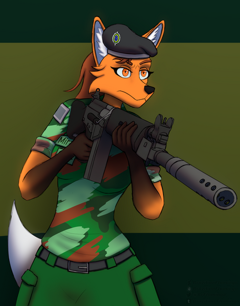 #gun #military #militaryuniform #originalcharacter #fox #digitalart #weapon #badass #fanart #anthro #canid #characterdesign #female #foxgirl #furry #furryfemale #girl #m16 #m203 #sitting #furrycharacter #fluffyphase #moonfurrywolf