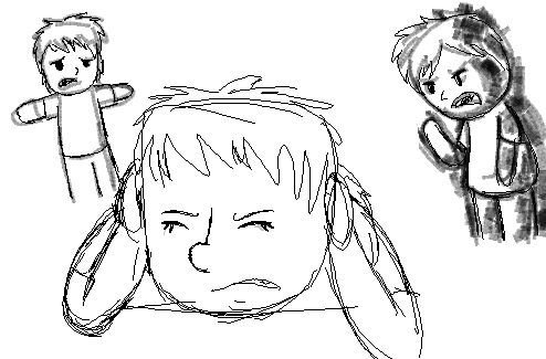 Is mostly very grumpy and sarcastic (Although is pretty bad at it). Is quite openly a bit of a playground bully, picking on younger kids to give him their lunch or any food they might have on them, but most of the time this doesn't end well if they have older brothers. Has pretty much been caring for Ashly by himself for the past six years, ever since their father went off the rails a bit when their mother died. Is very short tempered, which tends to lead to people making fun of him to see him lose his temper.