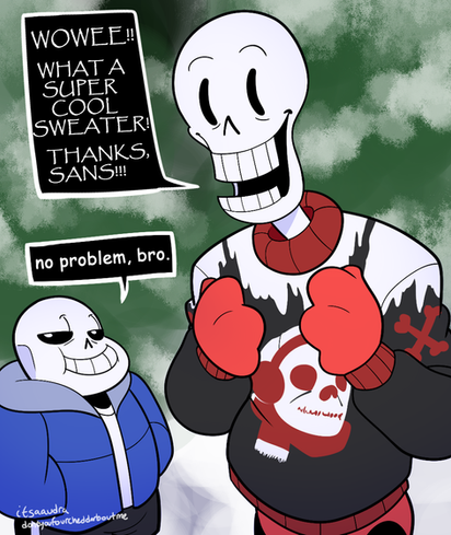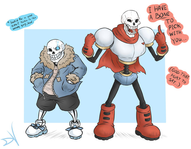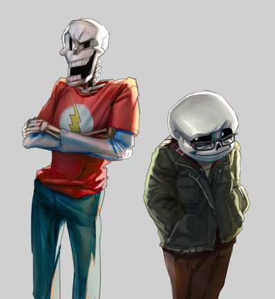 Right!? My fiance said the same thing! xD As soon as he saw the Skull gang he was likwe "DUDE SOMEONE SHOULD MAKE THIS WITH SANS AND PAPYRUS!" XD I saw the same picture. I love this so much!!! And I think Adding Gaster as the gang leader would be perfect (Haven't played the game yet) This is truly brilliant and Sans is super cute <3Β