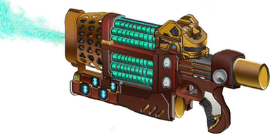 A fast-firing three-round auto-burst rifle chambered for explosive micromissiles, accurately described as “the poor man’s Catafalque.”