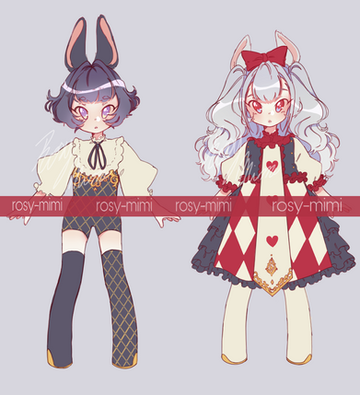 #auction #checkered #chibi #cute #dress #red #referencesheet #whiterabbit #aliceinwonderlandrabbit #kemonomimi