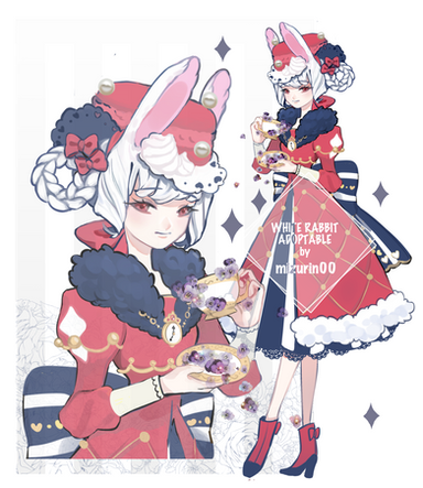 " Halt -- those who have no buisness with the queen must set forth away from here.. "This design was inspired by Alice in Wonderland -- The white rabbit. OF course ive been watching the old alice in wonderland // and this babes design i wanted alittle modern but more new AAA i had alot of help from a good friend with some color designs HNGH