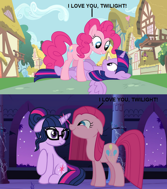 Well we all see that they are from the Princess Twilight coronation ceremony, hence their outfits. Well...I realize that even though alicorns seem to be all mighty, that doesn't make them immortal, but I still like the idea of them being that way...it causes a bitter sweet ordeal for Twilight. If she were immortal, than she would out live all of her friends, and wouldn't that be just so sad? To see them all go? Well...that is why I like that idea xD I'm a terrible person...but anyways...that is why Twilight says "Now I really can love you for--"