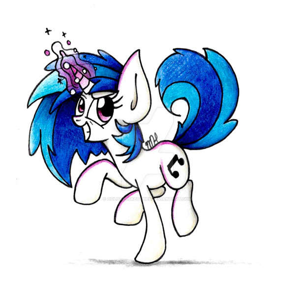 As for this work, you've done very nicely as usual with the lines and shines. Although you have these going for you along with decent colouring within, the shaded lining looks a little messy under her mane and especially at her forehead. Also, is the magic shine at the can's top left corner really a part of the shine or was it a colouring error? You did well on shining on her hair by spots, but the shading's odd. Also, you should address the tip of her horn's oblique lines and her neck curls' shading looks a little excessive. However, you shaded her collar and spikes quite nicely. You also made creative use of an apparently famous logo and made it your own. With all factored in, you did well and hope you continue improving upon your future pieces.