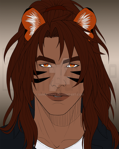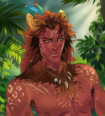Mateo is a shapeshifter, and his main form is a jaguar. Hence the rosettes down his arms. Heβs cheeky, loyal and fiercely protective.Β