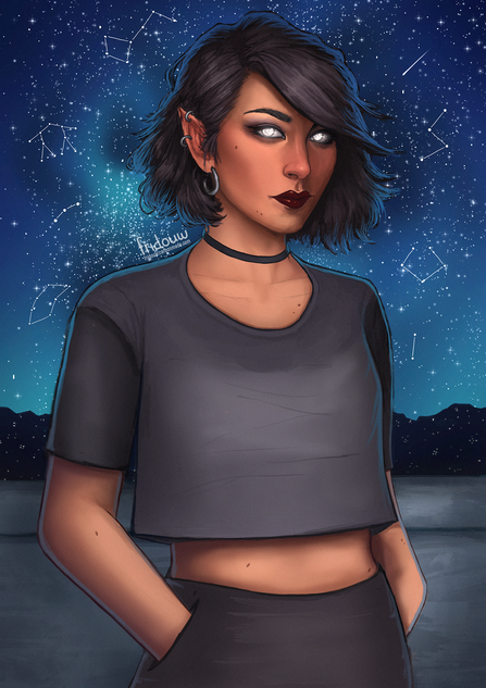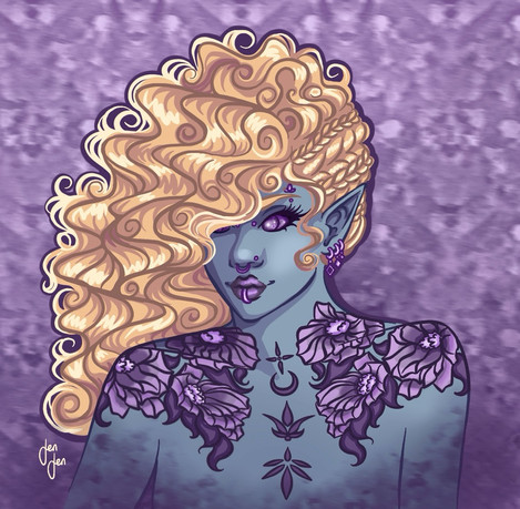 Snow is a Sphynx, a cat race that very much are associated with death magic. She has a very hard time controlling her powers, which manifest in voices of the dead, so she uses alcohol and drugs to drown them out.Procreate - 6hr 21min