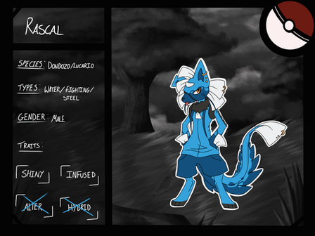 Not everything is as it seems, and that especially goes for this Lucario. He is a walking contradiction, still trying to find his place in life. His body tells tales of trainings and hardships that made him sturdy and efficient. Scarred hands used to being brutal, merciless. And even to today, he radiates this secureness to use his strength and a nearly feral wrath for combat. He didn't gain the title of "Hellhound of the New Moon" for nothing after all.