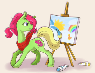 Birthday present for a friend featuring their OC ArtiStelle <3It also marks my first attempt at backgrounds x3