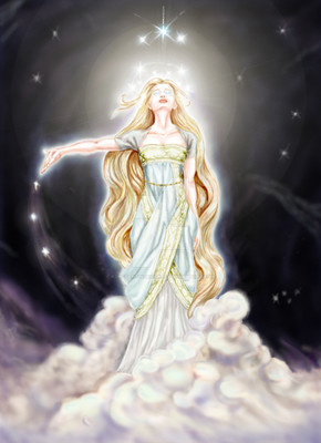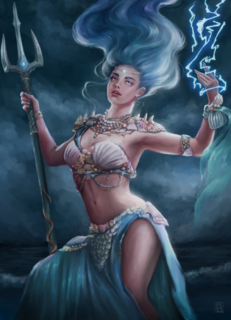 Really love the colors and her arm. (Seriously, look at that arm!) Also it is really cool the way her hair seems to transform into a drape or something. She's really beautiful, but I think that she lacks expression. Maybe that's a feature of ancient gods, who knows.