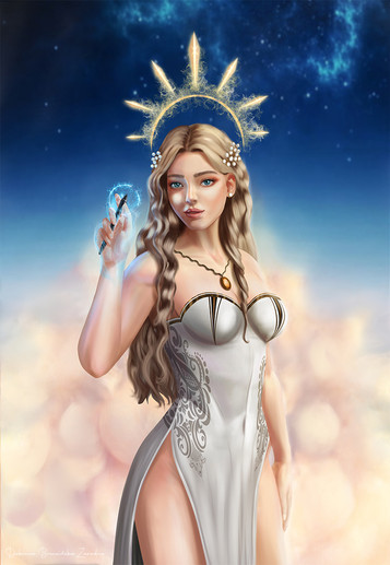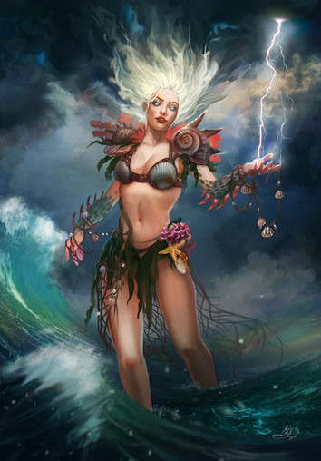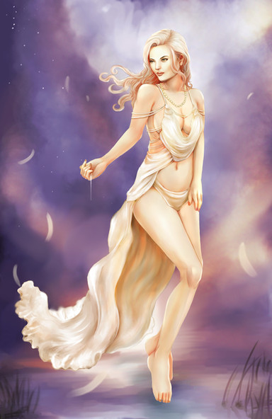 zostałam na dłużej i zobaczyłam piękne światła na twarzy, dłoń, włosy i materiał. kojarzy mi się ta postać z załamującą się falą oceanu, w którą wpada światło zachodzącego słońca.
