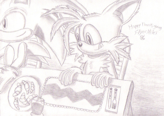 Arrrrrrr! It's a nice picture. Tails is my favorite character. I don't think do any bad things. He might have been framed by Dr. Eggman and his robots. If would look better in color.