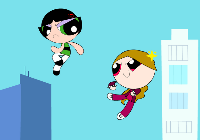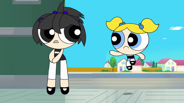 Bunny just arrived on the scene to save her sisters from Bell, although the girls couldn't see who it was behind the shadow and dust from their own battle.