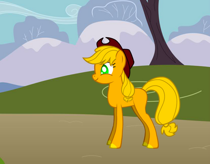 Applejack: Lemme get that for ya *bucks the tree and the apple falls off into Tod's hoof*