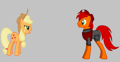 Applejack: *hears the sound of someone trying to buck an apple out of the tree nearby* Huh? *gallops toward the sound and sees him*
