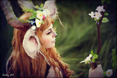I really love this costume, the almost bovine like look to the horns is super cute.Β I liked seeing you alongside your friend with the golden faun costume, good pairing.