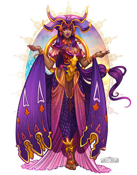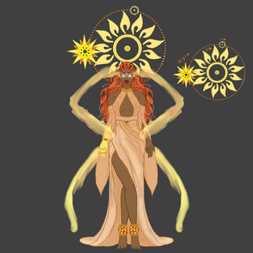 Interpretation of a human lady representing the sun.ALSO see the little sun goddess creature on the right in there? You can totally get her as a toy on PT. I think she needs like 5 more orders or something ridiculously small: