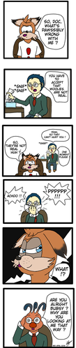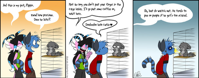 That grey fellow in the last panel would be an extremely old OC named Nathaniel. He may pop up occasionally. >o>
