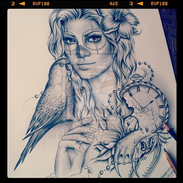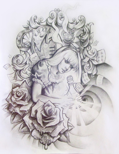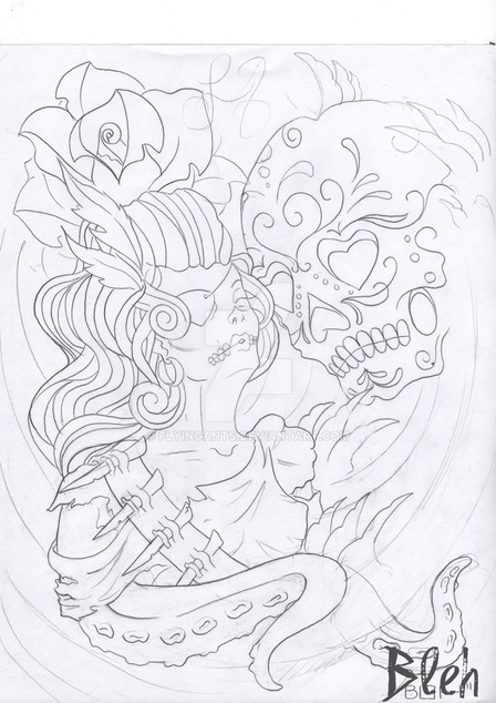 I would really love to tattoo this on someone!This is a picture the drawing was too big for a scanner. Its the unfinished and watermarked version.