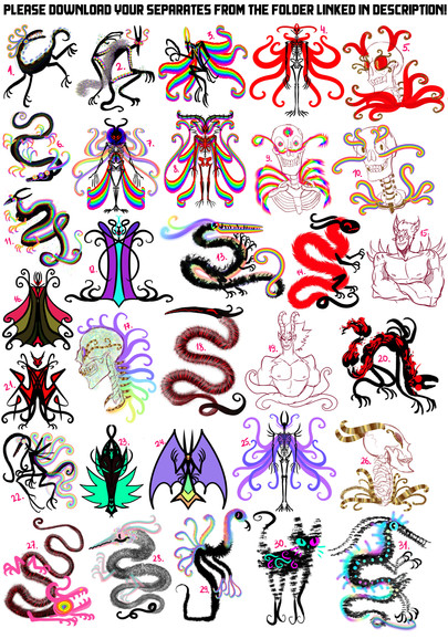 - First come first serve - to claim, comment with number of the adopt you want and I'll mark it as yours. Full size file is available under download, once I've confirmed that you own the adopt, please just download the file and cut out the adopt yourself from there, since these are free I don't want to spend time going back and forth between files to extract images. If you absolutely have no idea how to use any graphic program to cut it out, I will help you but if you know how to, please do not ask me for a separate.