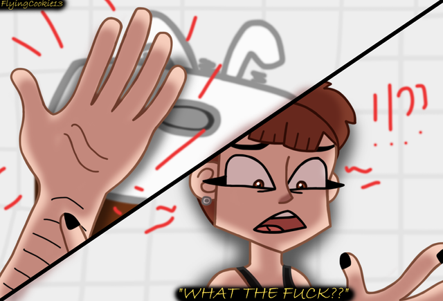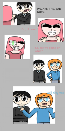 Evie has had ENOUGH. I loved making the shading around her face intensify so heavily. Also, the reason for all the highlights on her eyes in the second panel is her eyes shining, which I headcanon would happen if the series was animated, when characters had a major moment or were about to do something huge for their character. Fun fact, I also referenced my own hands for the slap scene!~~Previous page ~~