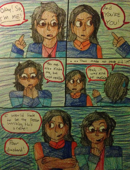 When stress causes you to make art out of your anxiety. I blame school. And Veela, partially. Also, the reading pattern changed here, it's now left to right instead of top/bottom, though reading styles will change sometimes - be sure to keep an eye out for when I say that!~~Previous page ~~