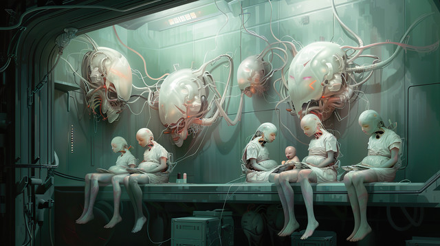 I definitely get a combination feeling of Matrix/Total Recall here. Great detail and coloring. The premise itself is very foreboding and you bring that across with the darker, dirtier tones you've used. Excellent work.