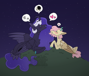 Hey!! Sorry I don't post a lot now !I've been busy and hey I turned 20! Heres an old sketch I decided to finish, of Princess Luna and Applejack!