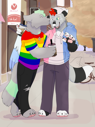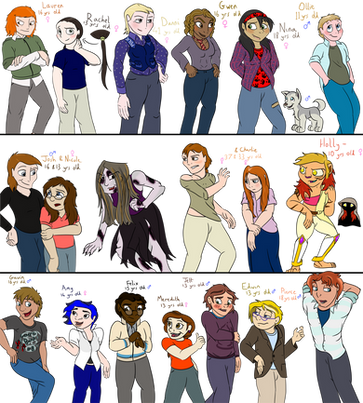 I'm the one with the green hair, and my sister Haley(WolfehKitteh )Β is the one with the striped shirt and Sami is the one with the red shirt! My pup is Hula !