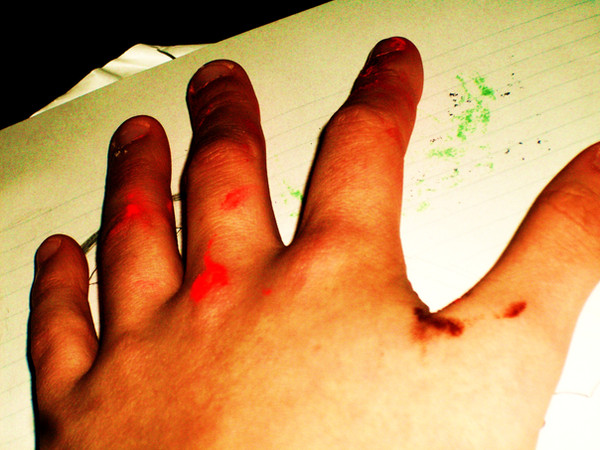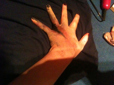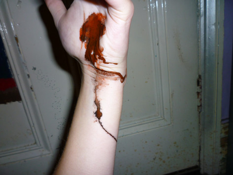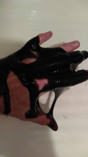 Some blood I made for a show (details in blood 1)This blood is thick black liver blood. If you were stabbed in the liver this is what would come out.