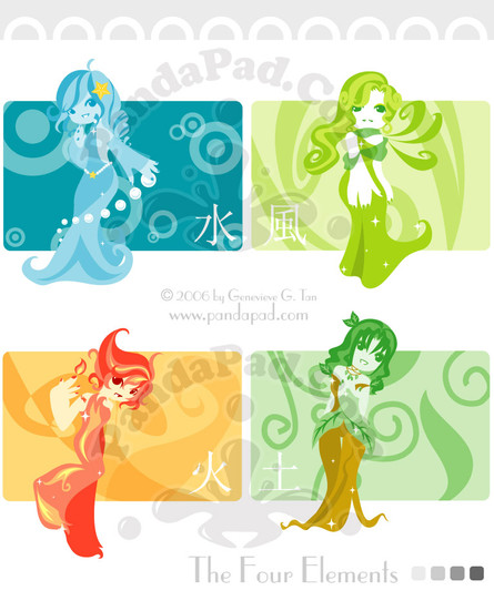 Very pretty! Loving the girls themselves, the Chinese characters in the upper left corners, and that small part of their respective elements in their hands.