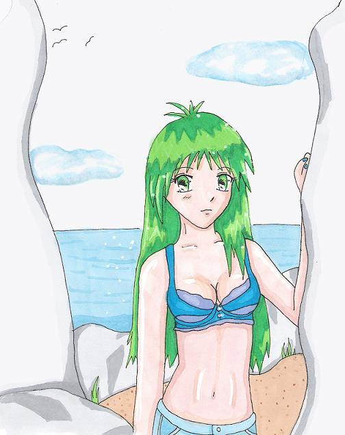 Very creative! I like how you incorporated the hair into the background! And you drew her body just perfect!