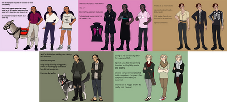 Just got these cleaned up yesterday. Thought it would be good to put these up! I might add more things to it eventually, we'll see. Also his last name is on this! I have no idea if it's going to come up in the comic but I did actually give him a full name.Might end up tweaking things every now and then because I'm super finicky with the refs for these guys.