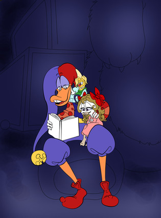 I'm not so sure about that... this expression is pretty close to the expression he had when Negaduck cut him in two with his chainsaw XD I'm not so sure the horror of being sliced in two is equal to having a bad dream... but if you approve, then yay! (Also I'm sure if Quacky had any say in it, he'd say I made him look fat.) No no, thank YOU.