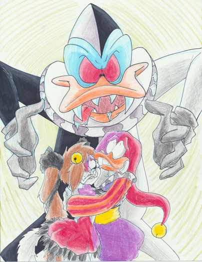 Dawww, Bitey looks so happy there! He's like a little jack-in-the-box that sprung up. "Pop goes the- I'M GONNA KILL YOU!" Negaduck is so sweet.