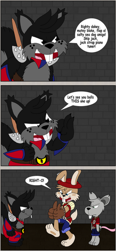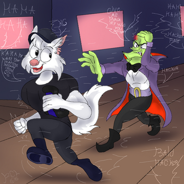 Aww thank you XD Mr. Bananabrain's original line was 'Oh shit' , but I figured while I was at it I'd throw in another inside joke instead. Megsy's fun to draw, I'll get him right one day.
