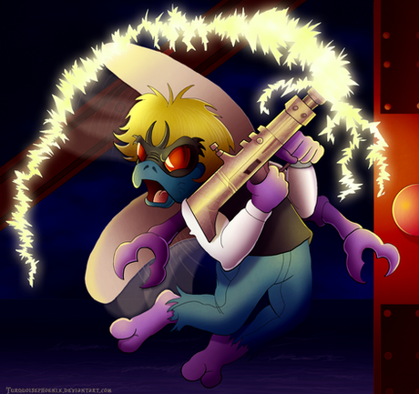 "Well it's about time those plants of yours woke up, Bushroot! 'Ol Sparky's about to get the tickling of his life! Hee-hee." twittered the nutty duck. Bushroot paled a little, sitting up straight.