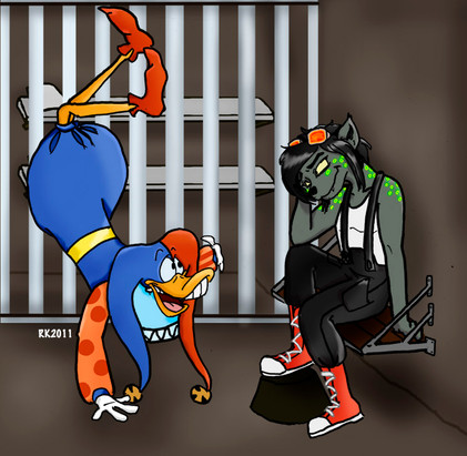 OH MY GOD.. he looks.. soo messed up in such a great wonderful way xD I LOVE HIS EXPRESSION SOO MUCH xD AHH!!! Ohhh Quackerjack, you soo crazy xD and dem undies. SOO BEAUTIFUL