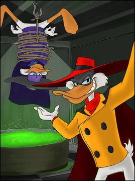 BAHAHAHAHA! I'm so glad my Negaduck inspired you to do this Seriously, that's what I always pictured him doing to Megavolt XD It took me awhile to come up with the answer though, originally I was just going to go with "Well, he IS a rat".