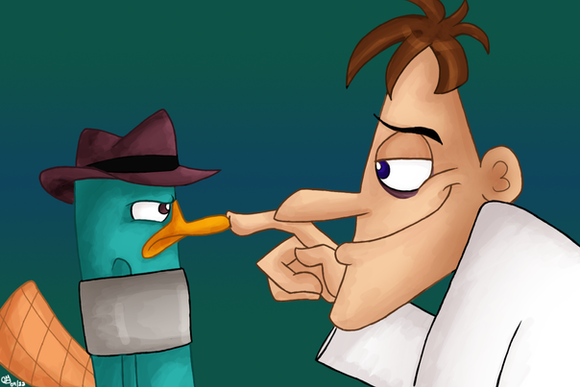 " To add insult to injury, the platypus is leading... "And some mindless Doof/Perry fluff. Grr, I'd forgotten how annoying inking freehand was.