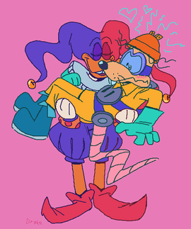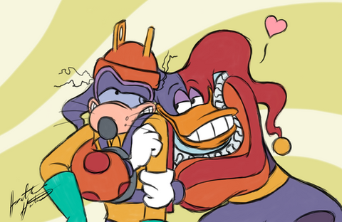 3: She drew Megavolt, I drew Quackerjack. Megsy's showing his man that their relationship hasn't lost it's spark. Kind of a part 2 to... number two.