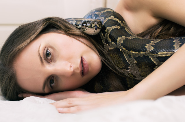 #house #light #model #natural #portrait #python #snake #window #woman